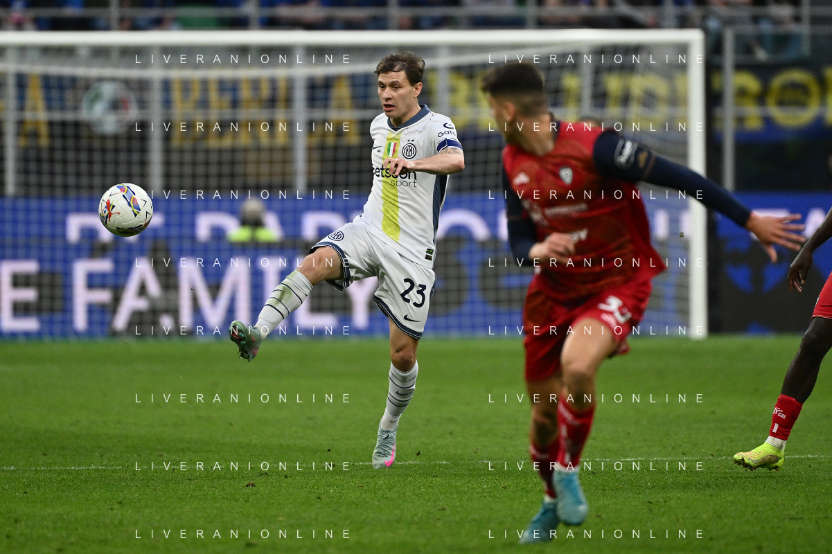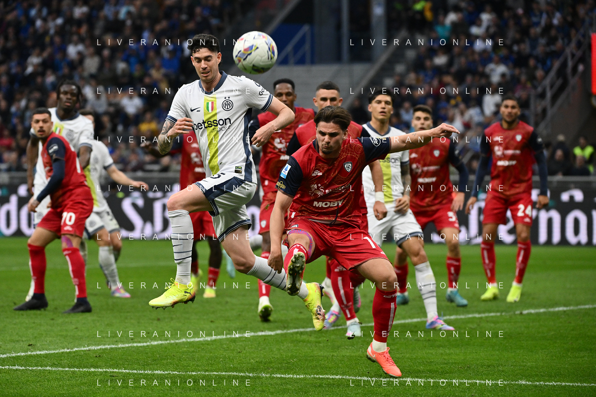 Inter vs Cagliari nella foto Alessandro Bastoni (Inter) e Razvan Marin (Cagliari) Milano 12-04-2025 Stadio Giuseppe Meazza - San Siro Campionato Serie A Enilive - 32a giornata foto Roberto Garavaglia/Agenzia Aldo Liverani sas