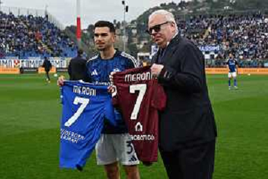 TVRG Como vs Torino nella foto prima della gara lo scambio maglie in ricordo di Gigi Meroni Como 13-04-2025 Stadio Giuseppe Sinigaglia Campionato Serie A Enilive - 32a giornata foto Roberto Garavaglia/Agenzia Aldo Liverani sas