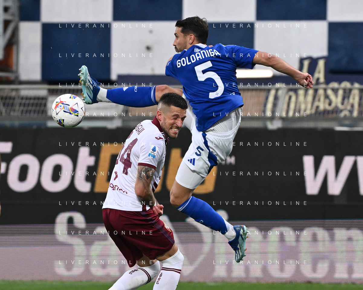 TVRG Como vs Torino nella foto Edoardo Goldaniga (Como) e Cristiano Biraghi (Torino) Como 13-04-2025 Stadio Giuseppe Sinigaglia Campionato Serie A Enilive - 32a giornata foto Roberto Garavaglia/Agenzia Aldo Liverani sas