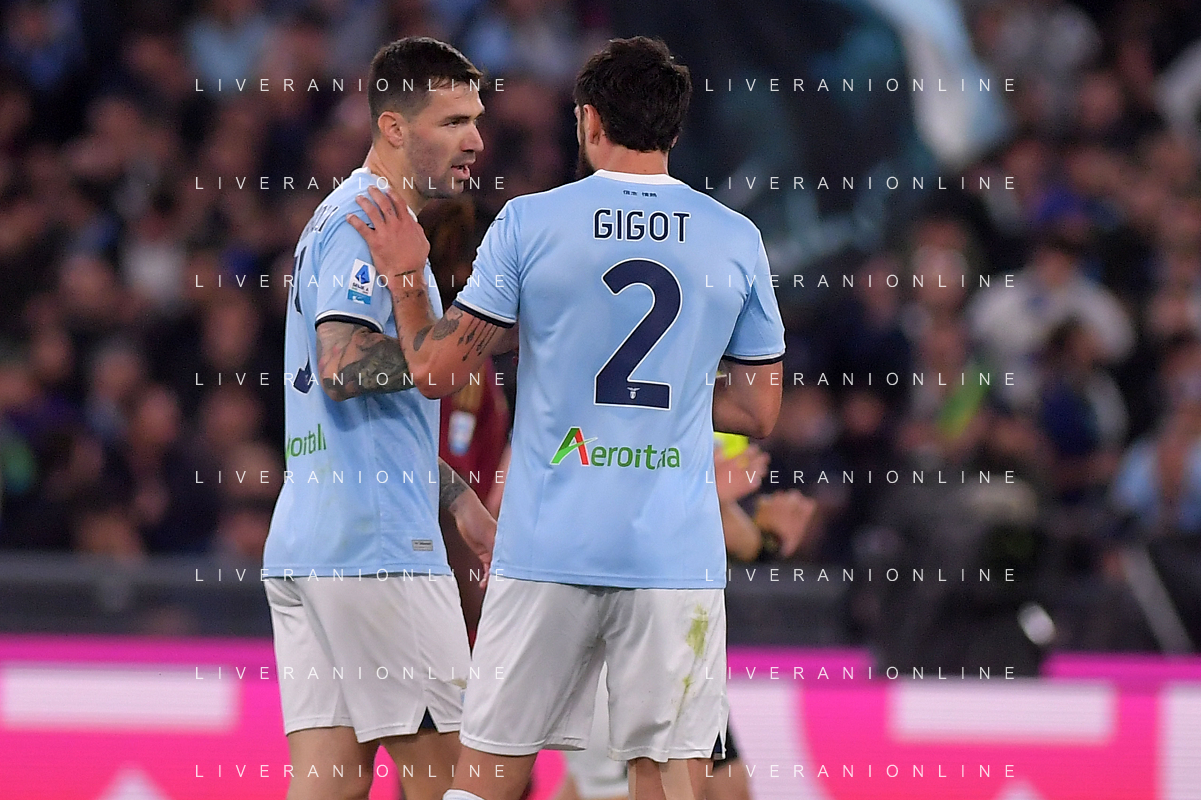 Lazio vs Roma Campionato Serie A Enilive - 32 Giornata Stadio Olimpico - Roma 13-04-2025 nella foto Romagnoli e Gigot FOTO FEDERICO GAETANO-AG ALDO LIVERANI SAS