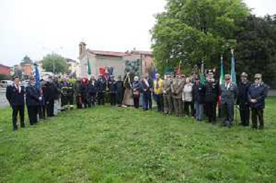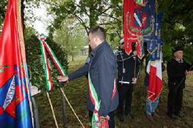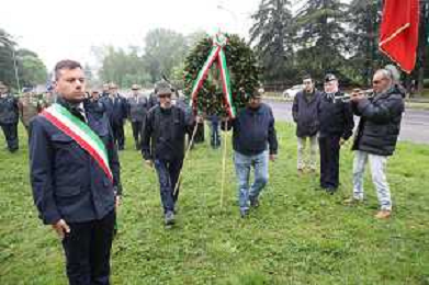 IMOLA 14 04 2025 Imola ha celebrato gli 80 anni dalla Liberazione al Giardino Generale Anders in via Coraglia, si e’ reso omaggio al II Corpo d’Armata polacco e all’Orso Wojtek, mascotte dei soldati polacchi. NELLA FOTO SINDACO DI IMOLA MARCO PANIERI E RAPRESENTANTI MILITARI E CIVILI ©SANNA - AGENZIA ALDO LIVERANI SAS