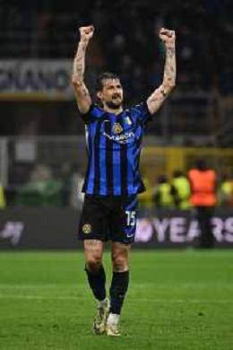 Inter vs Bayern Monaco nella foto Francesco Acerbi (Inter) esultanza a fine partita Milano 16-04-2025 Stadio Giuseppe Meazza - San Siro UEFA Champions League quarti di finale gara di ritorno foto Roberto Garavaglia/Agenzia Aldo Liverani sas- AGENZIA ALDO LIVERANI SAS