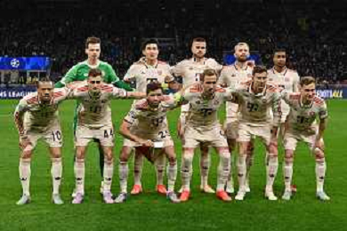 Inter vs Bayern Monaco nella foto formazione Bayern Monaco, in piedi da SX Jonas Urbig, Min-jae Kim, Eric Dier, Konrad Laimer e Michael Olise; in basso da SX Leroy Sanè, Josip Stanisic, Thomas Muller, Harry Kane, Leon Goretzka e Joshua Kimmich Milano 16-04-2025 Stadio Giuseppe Meazza - San Siro UEFA Champions League quarti di finale gara di ritorno foto Roberto Garavaglia/Agenzia Aldo Liverani sas