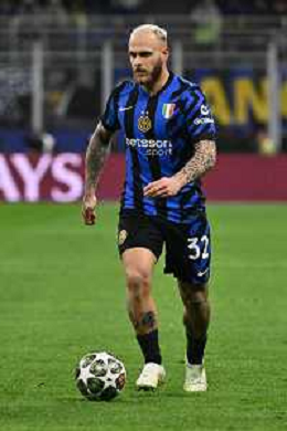 Inter vs Bayern Monaco nella foto Federico Dimarco (Inter) Milano 16-04-2025 Stadio Giuseppe Meazza - San Siro UEFA Champions League quarti di finale gara di ritorno foto Roberto Garavaglia/Agenzia Aldo Liverani sas