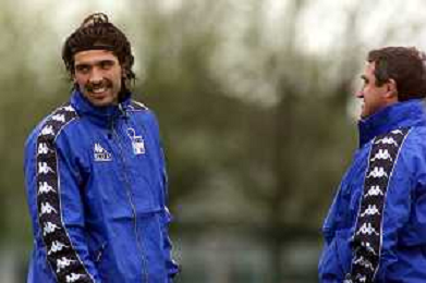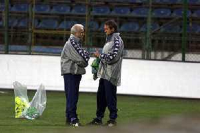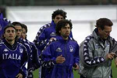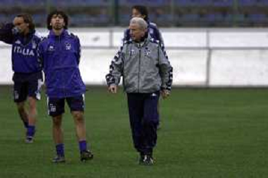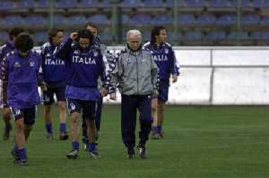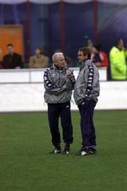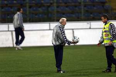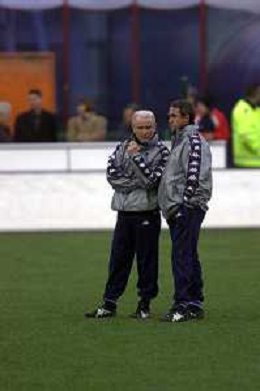DIG- ALLENAMENTO NAZIONALE ITALIANA CALCIO A BUCAREST IN ROMANIA 23 MARZO 2001 NELLA FOTO L’ALLENATORE GIOVANNI TRAPATTONI E STEFANO FIORE AGENZIA ALDO LIVERANI SAS