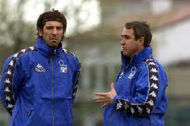 DIG- ALLENAMENTO NAZIONALE ITALIANA CALCIO A MONFALCONE 27 MARZO 2001 NELLA FOTO GIANLUIGI BUFFON E PIETRO GHEDIN AGENZIA ALDO LIVERANI SAS