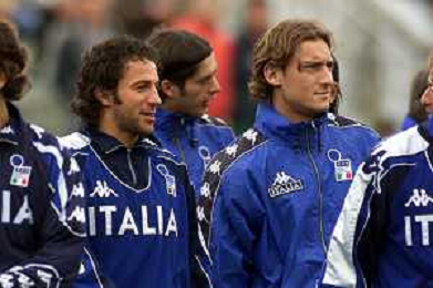 DIG- ALLENAMENTO NAZIONALE ITALIANA CALCIO A MONFALCONE 27 MARZO 2001 NELLA FOTO ALESSANDRO DEL PIERO E FRANCESCO TOTTI AGENZIA ALDO LIVERANI SAS