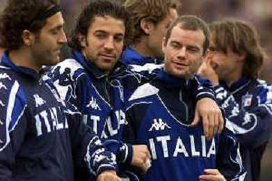 DIG- ALLENAMENTO NAZIONALE ITALIANA CALCIO A BUCAREST IN ROMANIA 23 MARZO 2001 NELLA FOTO DAMIANO TOMMASI, ALESSANDRO DEL PIERO, ALESSANDRO PIERINI E ENRICO CHIESA AGENZIA ALDO LIVERANI SAS