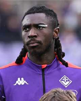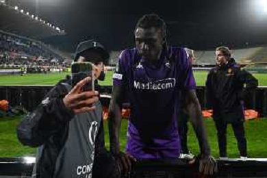 TVRG Fiorentina vs Celje nella foto Moise Kean (Fiorentina) foto con un raccattapalle a fine gara Firenze 17-04-2025 Stadio Artemio Franchi UEFA Conference League quarti di finale gara di ritorno foto Roberto Garavaglia/Agenzia Aldo Liverani sas