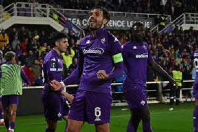 TVRG Fiorentina vs Celje nella foto esultanza finale Fiorentina Firenze 17-04-2025 Stadio Artemio Franchi UEFA Conference League quarti di finale gara di ritorno foto Roberto Garavaglia/Agenzia Aldo Liverani sas