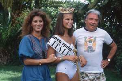 DIAP-RETROSPETTIVA EDWIGE FENECH ATTRICE NELLA FOTO EDWIGE FENECH CON FEDERICA MORO E UGO TOGNAZZI NELL'ANNO 1982 OSPITE DELLA MANIFESTAZIONE “MISS ITALIA“ AG ALDO LIVERANI SAS