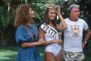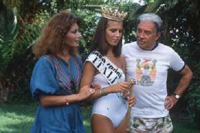 DIAP-RETROSPETTIVA FEDERICA MORO MISS ITALIA NELLA FOTO FEDERICA MOROCON UGO TOGNAZZI E EDWIGE FENECH NELL'ANNO 1987 AG ALDO LIVERANI SAS