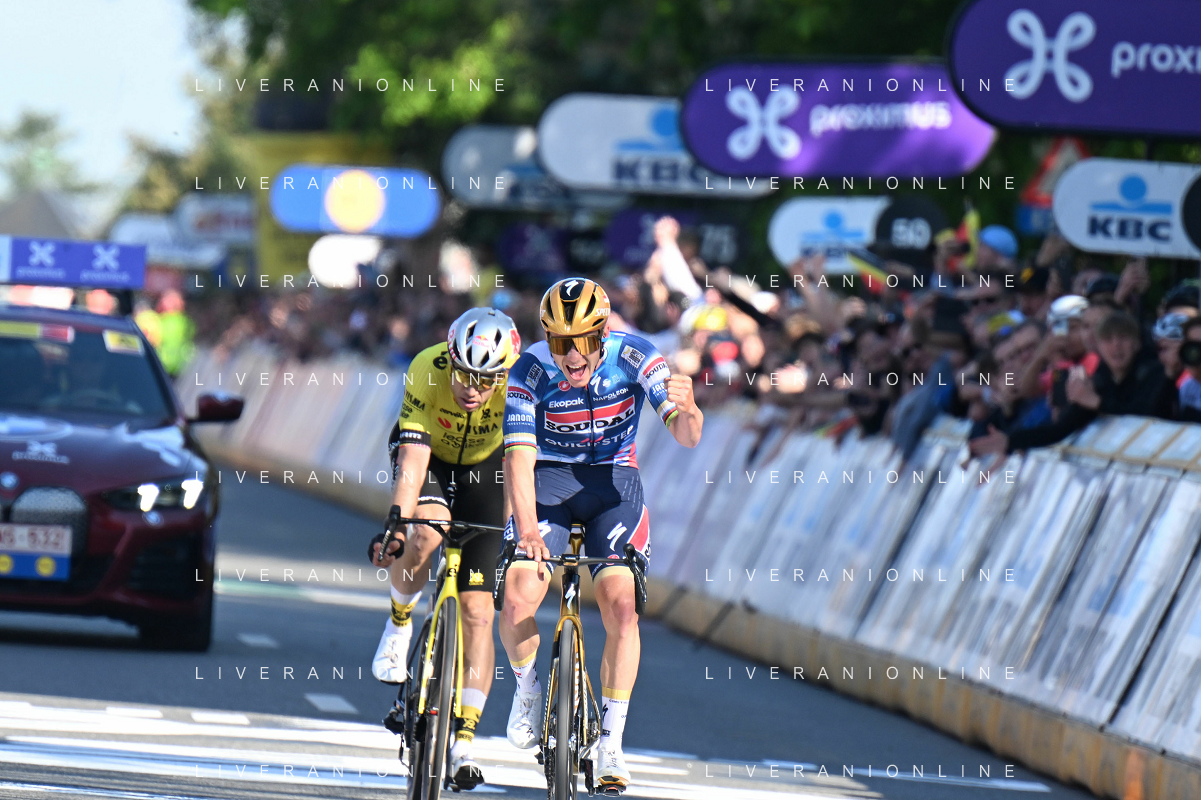 18-04-2025 Brabantse Pijl; 2025, Soudal - Quick Step; 2025, Visma - Lease A Bike; Evenepoel, Remco; Overijse; ©SIROTTI - AGENZIA ALDO LIVERANI SAS