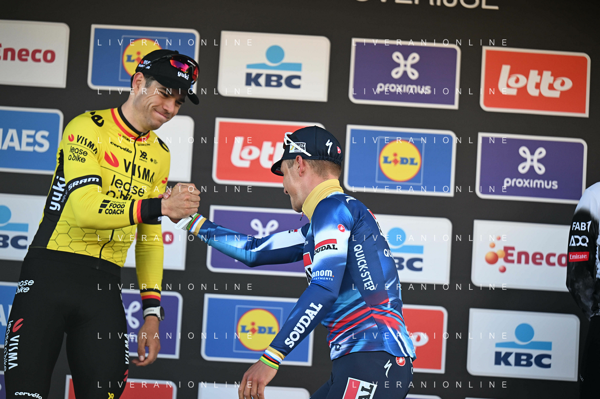 18-04-2025 Brabantse Pijl; 2025, Soudal - Quick Step; 2025, Visma - Lease A Bike; Evenepoel, Remco; Van Aert, Wout; Overijse; ©SIROTTI - AGENZIA ALDO LIVERANI SAS