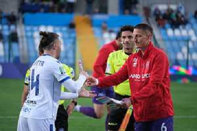 Saluto tra Fresco Luigi allenatore e presidente della Virtus Verona e Andrea Chiappella allenatore della Giana Erminio Giana Erminio vs Virtus Verona Gorgonzola 18-04-2025 Stadio Citta’ di Gorgonzola Trentasettesima giornata campionato Serie C Non foto Ricky Monteiro Martins/Agenzia Liverani sas- AGENZIA ALDO LIVERANI SAS