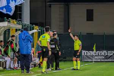 Giovanni Castellano direttore di gara estrae il cartellino rosso per Alberto Sala allenatore in seconda della Giana Erminio Giana Erminio vs Virtus Verona Gorgonzola 18-04-2025 Stadio Citta’ di Gorgonzola Trentasettesima giornata campionato Serie C Non foto Ricky Monteiro Martins/Agenzia Liverani sas- AGENZIA ALDO LIVERANI SAS