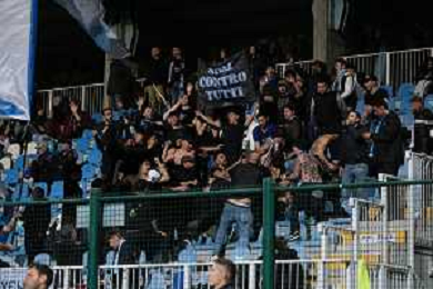 La Giana Erminio sotto I tifosi della Giana Erminio presenti allo stadio nel post partita Giana Erminio vs Virtus Verona Gorgonzola 18-04-2025 Stadio Citta’ di Gorgonzola Trentasettesima giornata campionato Serie C Non foto Ricky Monteiro Martins/Agenzia Liverani sas- AGENZIA ALDO LIVERANI SAS