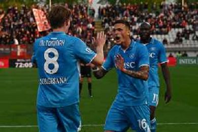 TVRG Monza vs Napoli nella foto esultanza finale Napoli Monza 19-04-2025 U-Power Stadium Campionato Serie A Enilive - 33a giornata foto Roberto Garavaglia/Agenzia Aldo Liverani sas