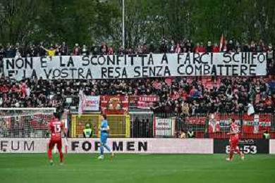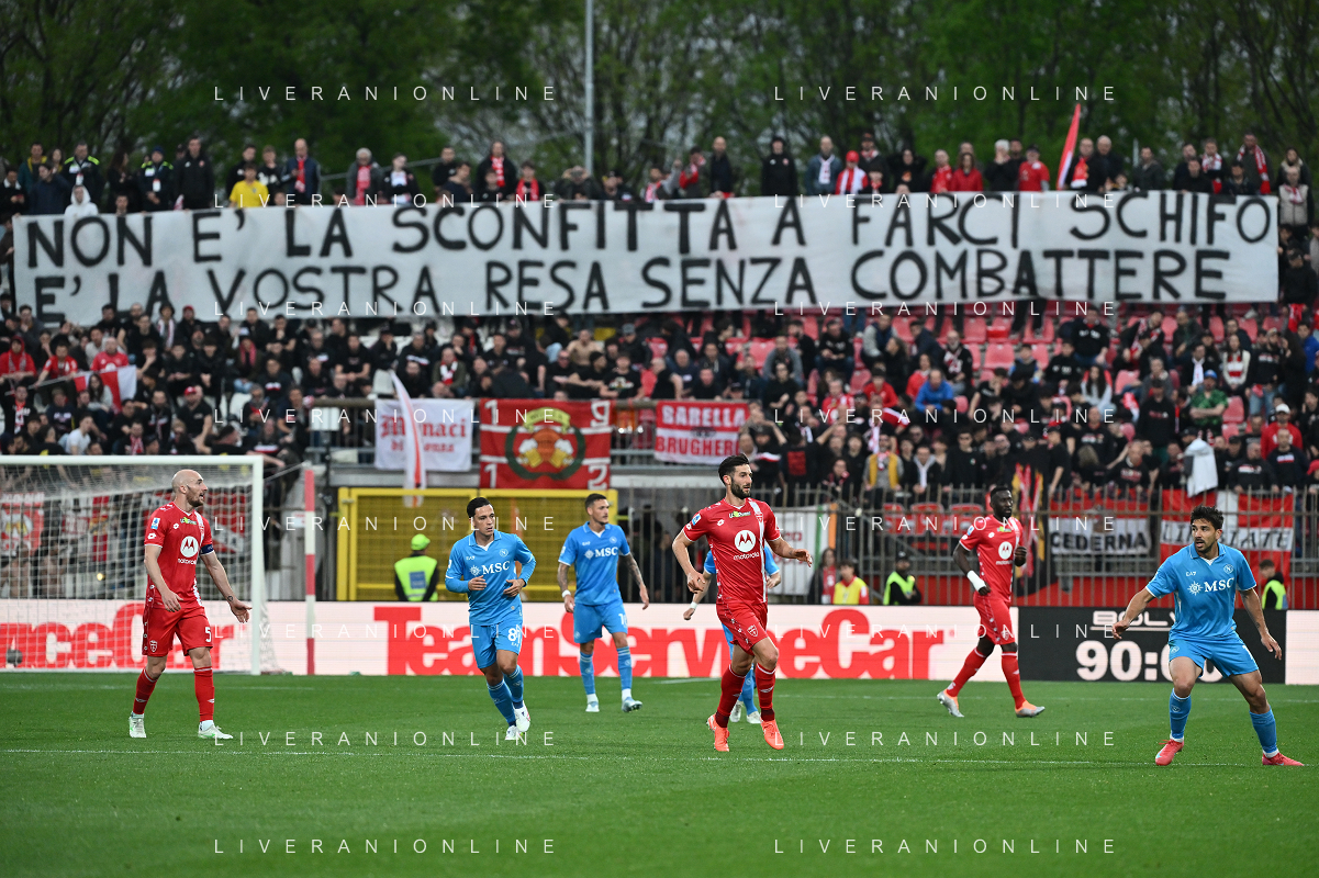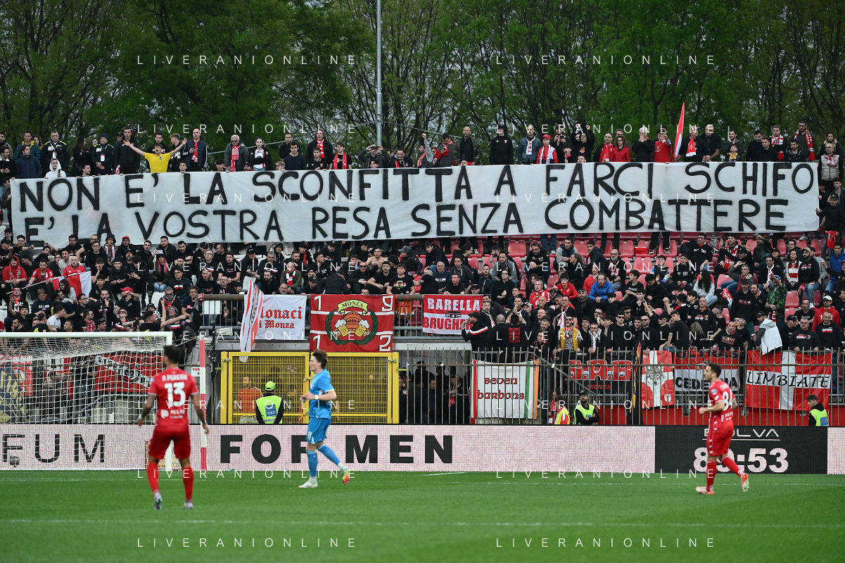 TVRG Monza vs Napoli nella foto striscione tifosi Monza Monza 19-04-2025 U-Power Stadium Campionato Serie A Enilive - 33a giornata foto Roberto Garavaglia/Agenzia Aldo Liverani sas