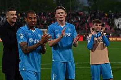 TVRG Monza vs Napoli nella foto esultanza Napoli dopo il gol dell'1 a 0 Scott Francis McTominay (Napoli) Monza 19-04-2025 U-Power Stadium Campionato Serie A Enilive - 33a giornata foto Roberto Garavaglia/Agenzia Aldo Liverani sas