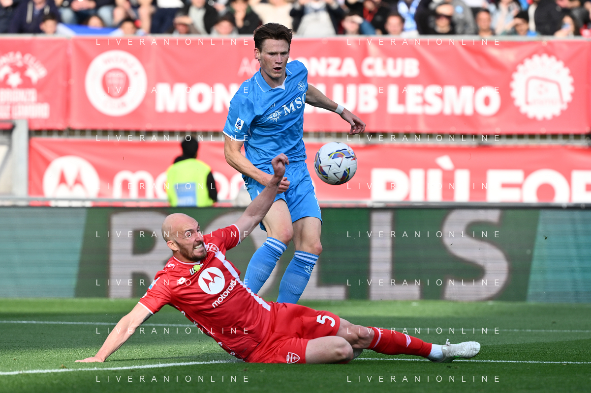 TVRG Monza vs Napoli nella foto Scott Francis McTominay (Napoli) e Luca Caldirola (Monza) Monza 19-04-2025 U-Power Stadium Campionato Serie A Enilive - 33a giornata foto Roberto Garavaglia/Agenzia Aldo Liverani sas