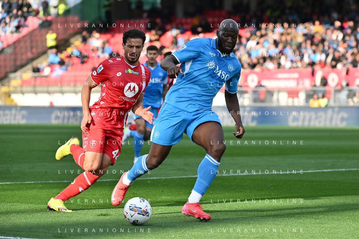 TVRG Monza vs Napoli nella foto Romelu Lukaku (Napoli) e sulla SX Andrea Carboni (Monza) Monza 19-04-2025 U-Power Stadium Campionato Serie A Enilive - 33a giornata foto Roberto Garavaglia/Agenzia Aldo Liverani sas