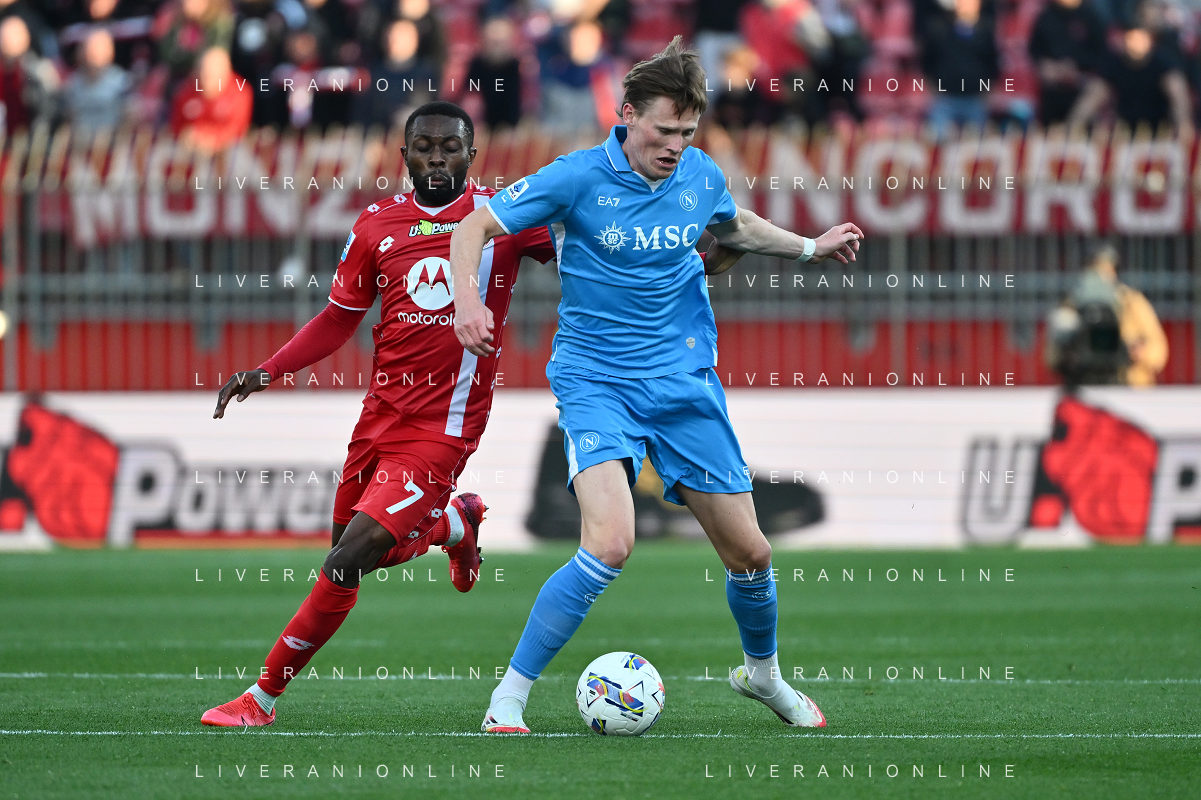 TVRG Monza vs Napoli nella foto Jean-Daniel Akpa Akpro (Monza) e Scott Francis McTominay (Napoli) Monza 19-04-2025 U-Power Stadium Campionato Serie A Enilive - 33a giornata foto Roberto Garavaglia/Agenzia Aldo Liverani sas