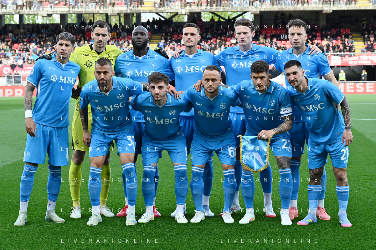 TVRG Monza vs Napoli nella foto formazione Napoli, in piedi da SX Mathias Olivera, Alex Meret, Romelu Lukaku, Rafa Marin, Scott Francis McTominay e Amir Rrahmani; in basso da SX Leonardo Spinazzola, Billy Gilmour, Stanislav Lobotka, Giovanni Di Lorenzo e Matteo Politano Monza 19-04-2025 U-Power Stadium Campionato Serie A Enilive - 33a giornata foto Roberto Garavaglia/Agenzia Aldo Liverani sas
