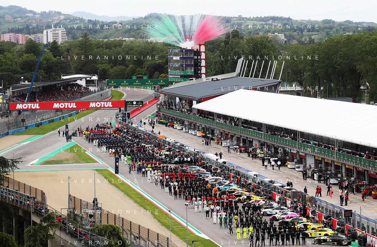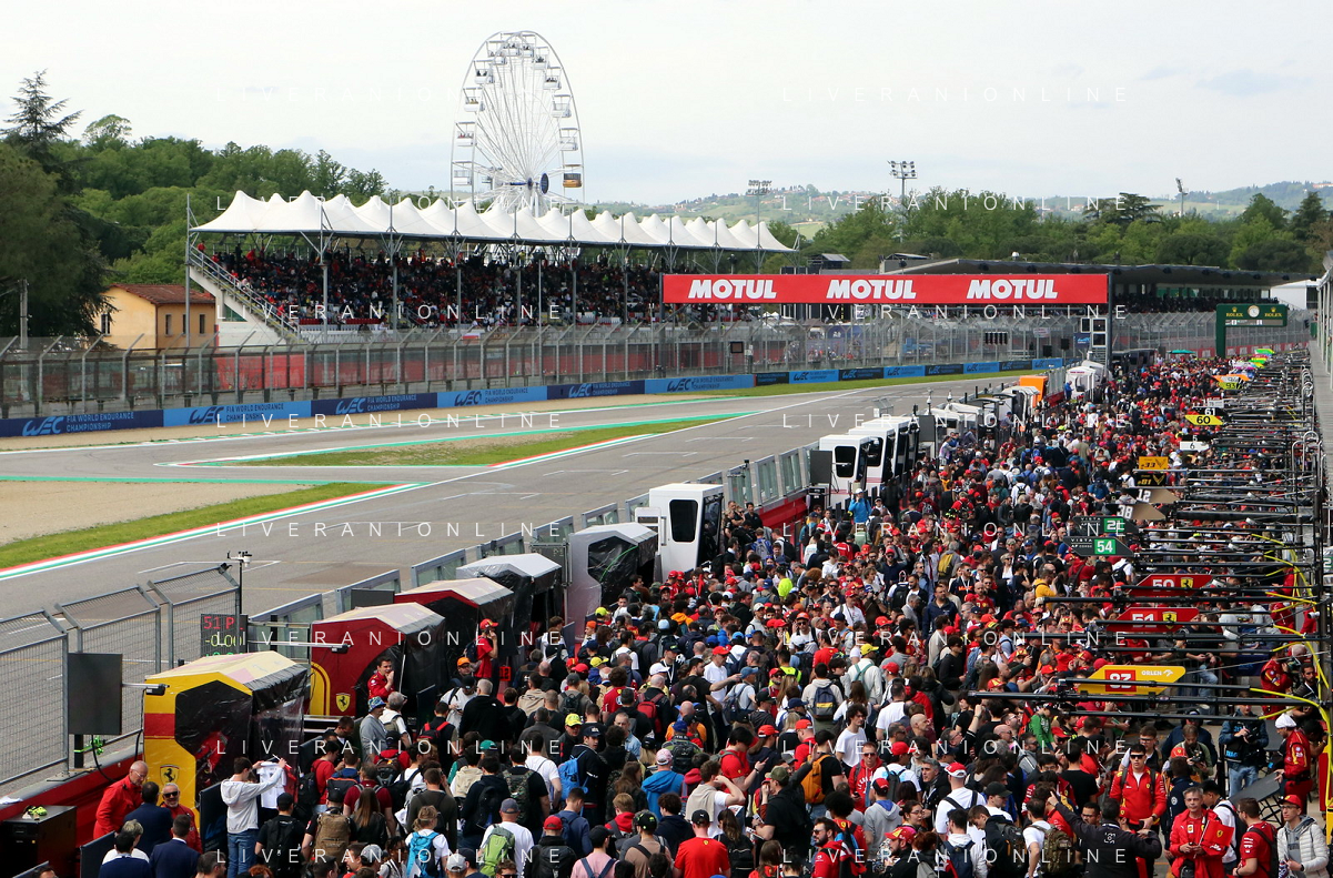 IMOLA 20 04 2025 AUTODROMO ENZO E DINO FERRARI WEC 6 ORE DI IMOLA NELLA FOTO PUBBLICO DOPO LA GARA VINTA DA FERRARI 499P DI ANTONIO GIOVINAZZI,PIER GUIDI E JAMES CALADO FOTO GIANNI SANNA-AG ALDO LIVERANI SAS