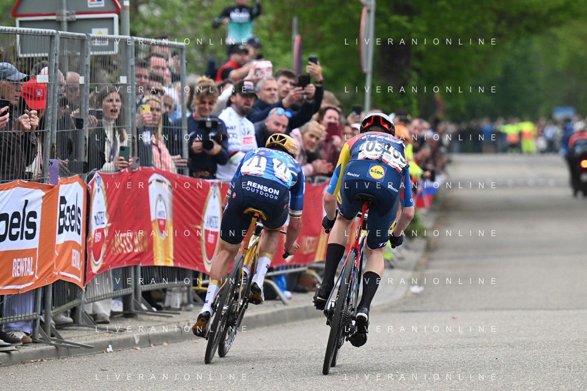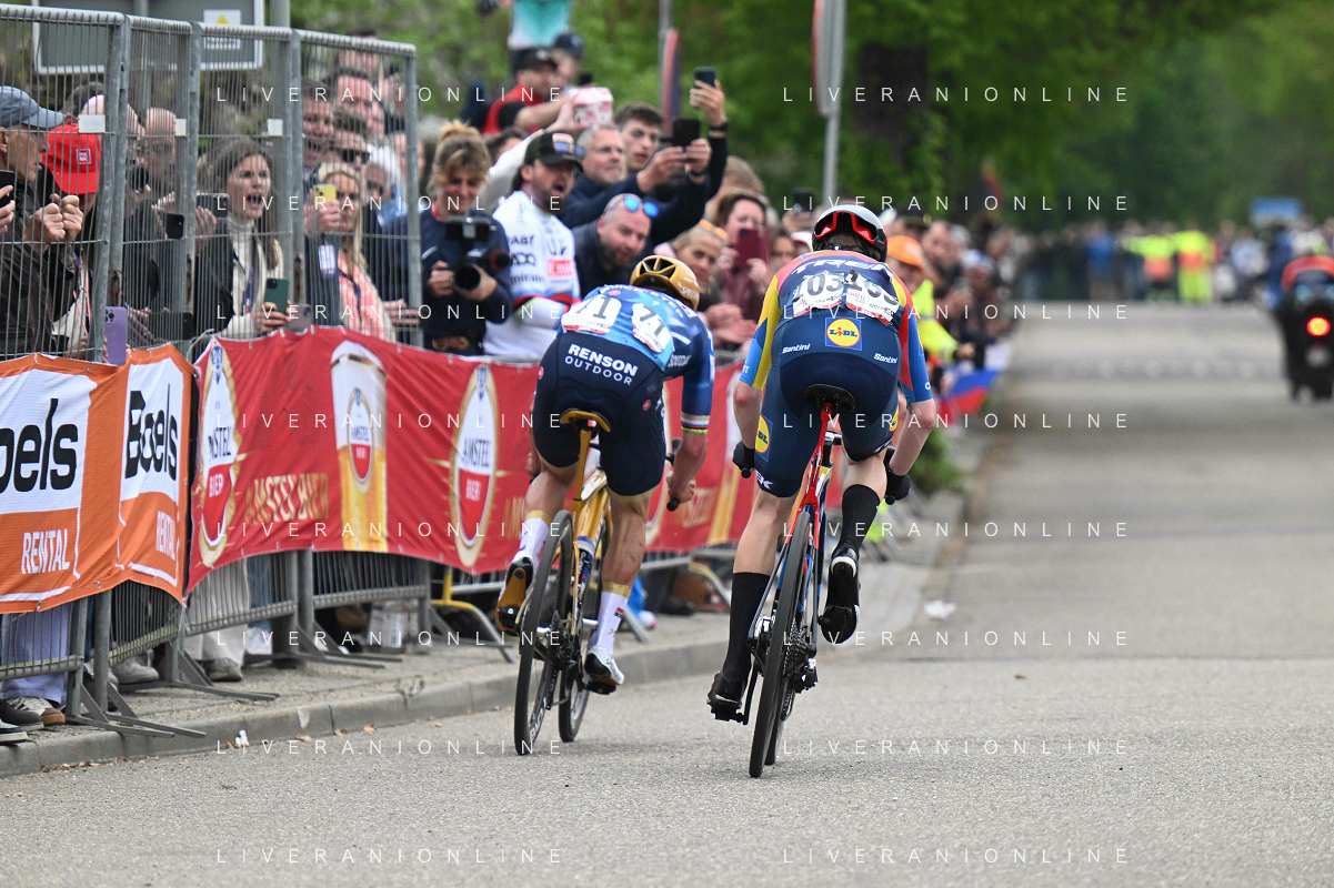 20-04-2025 Amstel Gold Race; 2025, Soudal - Quick Step; 2025, Lidl - Trek; Evenepoel, Remco; Skjelmose Jensen, Mattias; Valkenburg; ©SIROTTI - AGENZIA ALDO LIVERANI SAS