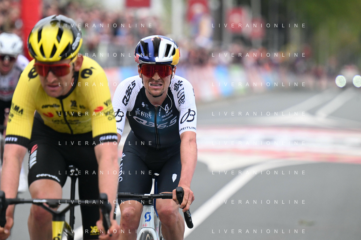 20-04-2025 Amstel Gold Race; 2025, Visma - Lease A Bike; 2025, Q36.5; Benoot, Tiesj; Pidcock, Thomas; Valkenburg; ©SIROTTI - AGENZIA ALDO LIVERANI SAS