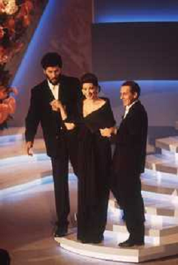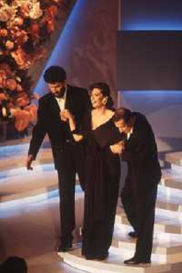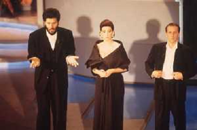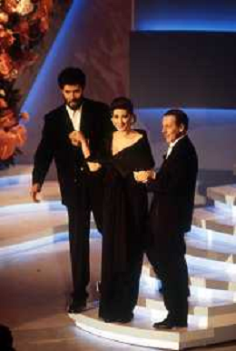 DIAP-RETROSPETTIVA EDWIGE FENECH ATTRICE NELLA FOTO EDWIGE FENECH CON ANDREA OCCHIPINTI E RICCARDO COCCIANTE AL FESTIVAL DI SANREMO NELL'ANNO 1991 AG ALDO LIVERANI SAS