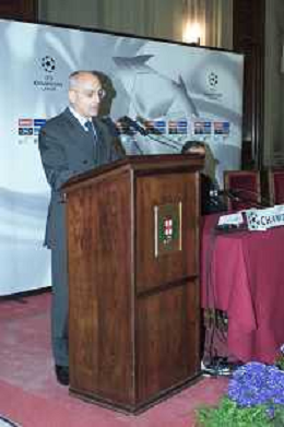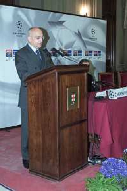 DIG- CONSEGNA DEL TROFEO PER LA FINALE DELLA COPPA DEI CAMPIONI A PALAZZO MARINO A MILANO 19 APRILE 2001 - RETROSPETTIVA NELLA FOTO GERHARD AIGNER SEGRETARIO GENERALE DELLA UEFA AGENZIA ALDO LIVERANI SAS