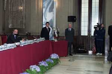 DIG- CONSEGNA DEL TROFEO PER LA FINALE DELLA COPPA DEI CAMPIONI A PALAZZO MARINO A MILANO 19 APRILE 2001 - RETROSPETTIVA NELLA FOTO ADRIANO GALLIANI AGENZIA ALDO LIVERANI SAS