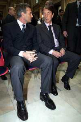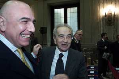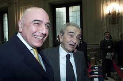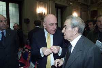 DIG- CONSEGNA DEL TROFEO PER LA FINALE DELLA COPPA DEI CAMPIONI A PALAZZO MARINO A MILANO 19 APRILE 2001 - RETROSPETTIVA NELLA FOTO ADRIANO GALLIANI CON GIUSEPPE PRISCO AGENZIA ALDO LIVERANI SAS