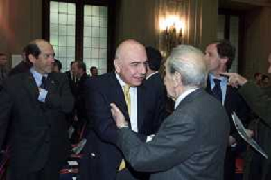 DIG- CONSEGNA DEL TROFEO PER LA FINALE DELLA COPPA DEI CAMPIONI A PALAZZO MARINO A MILANO 19 APRILE 2001 - RETROSPETTIVA NELLA FOTO FLORENTINO PEREZ AGENZIA ALDO LIVERANI SAS