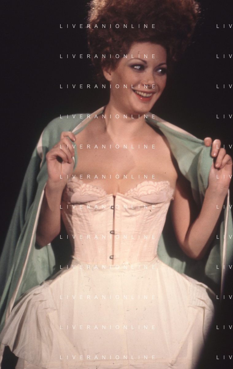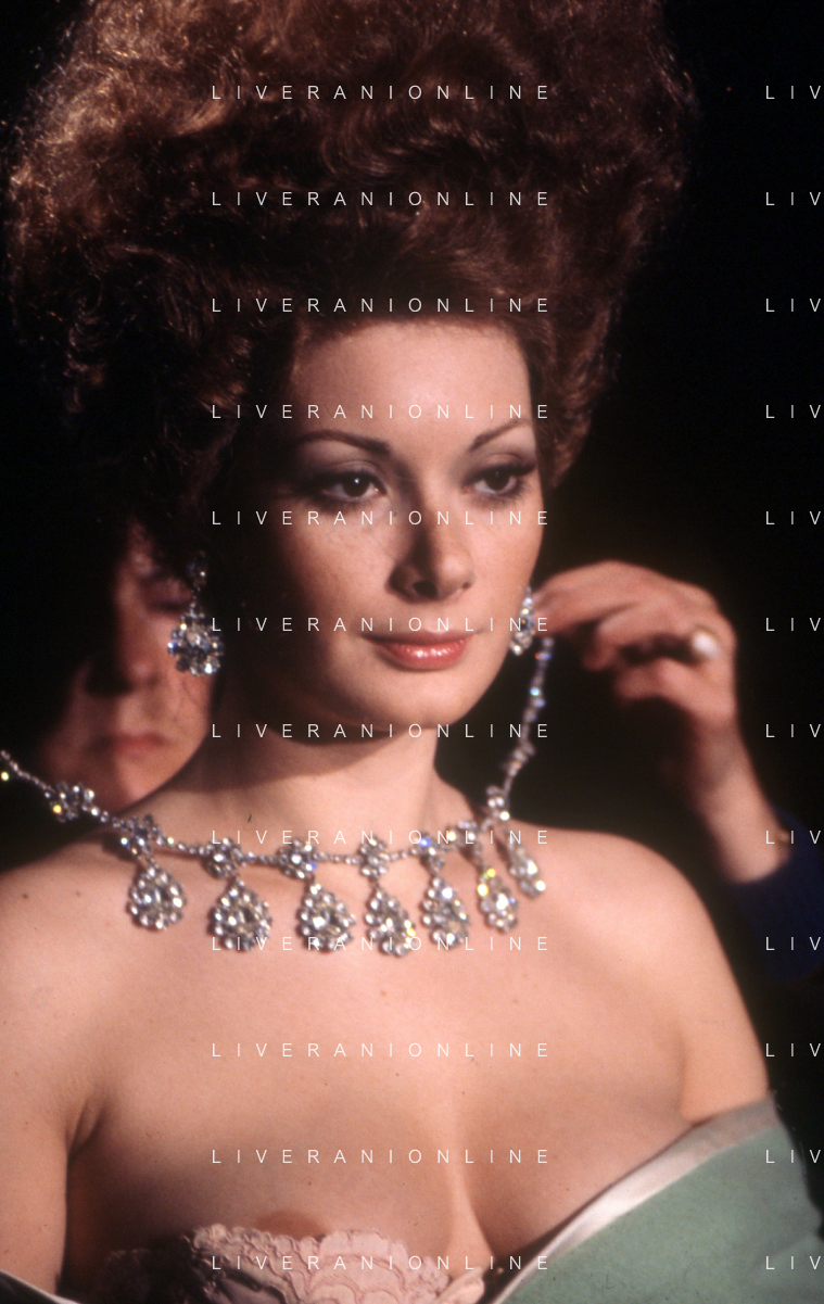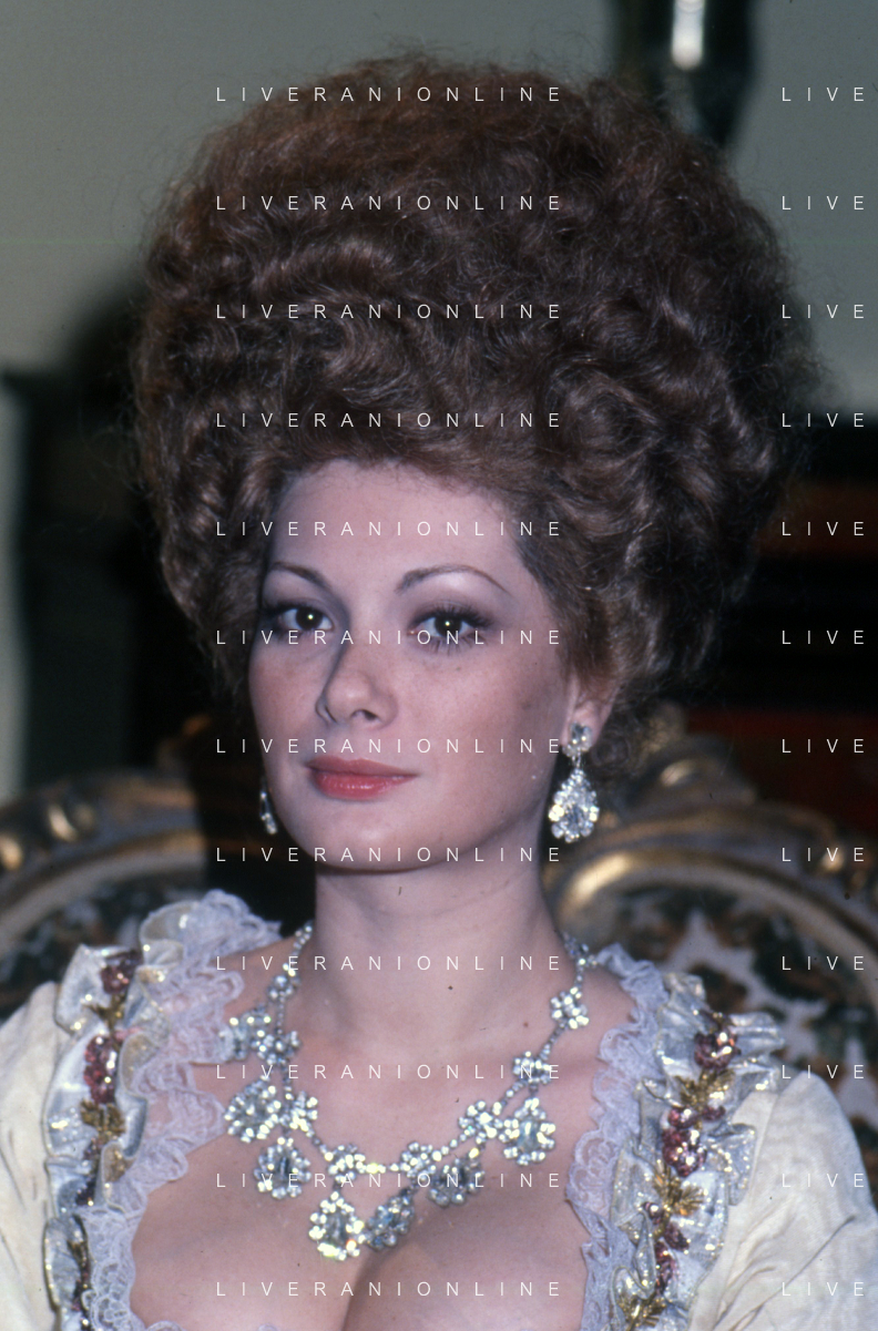 DIAP-RETROSPETTIVA EDWIGE FENECH ATTRICE NELLA FOTO EDWIGE FENECH SET DEL FILM“MARIA ANTONIETTA“ A ROMA FOTO EDGARDO DELLA SCORCIOSA-AG ALDO LIVERANI SAS