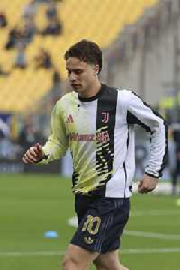 Kenan Yildiz of Juventus FC during warms up before Parma Calcio vs Juventus FC, 33° Serie A Enilive 2024-25 game at Ennio Tardini stadium in Parma (PR), Italy, on April 23, 2025. (Photo by Davide Casentini)- AGENZIA ALDO LIVERANI SAS