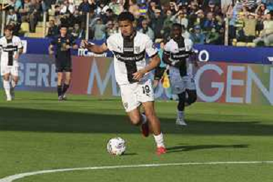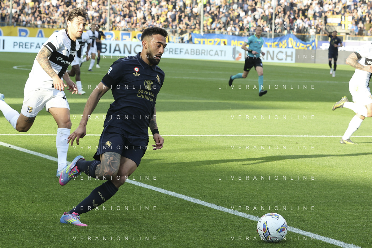 Adriàn Bernabè of Parma AC play the ball during Parma Calcio vs Juventus FC, 33° Serie A Enilive 2024-25 game at Ennio Tardini stadium in Parma (PR), Italy, on April 23, 2025. (Photo by Davide Casentini)- AGENZIA ALDO LIVERANI SAS