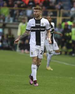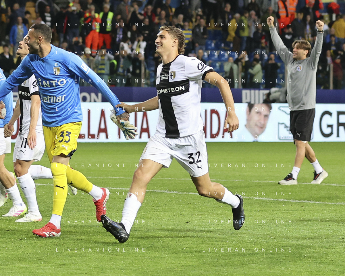 Mateo Pellegrino of Parma AC celebrate the victory at the end of Parma Calcio vs Juventus FC, 33° Serie A Enilive 2024-25 game at Ennio Tardini stadium in Parma (PR), Italy, on April 23, 2025. (Photo by Davide Casentini)- AGENZIA ALDO LIVERANI SAS