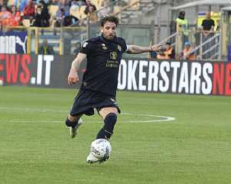 Simon Sohm of Parma AC play the ball during Parma Calcio vs Juventus FC, 33° Serie A Enilive 2024-25 game at Ennio Tardini stadium in Parma (PR), Italy, on April 23, 2025. (Photo by Davide Casentini)- AGENZIA ALDO LIVERANI SAS