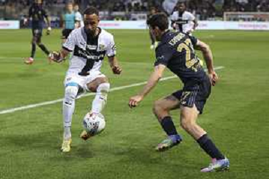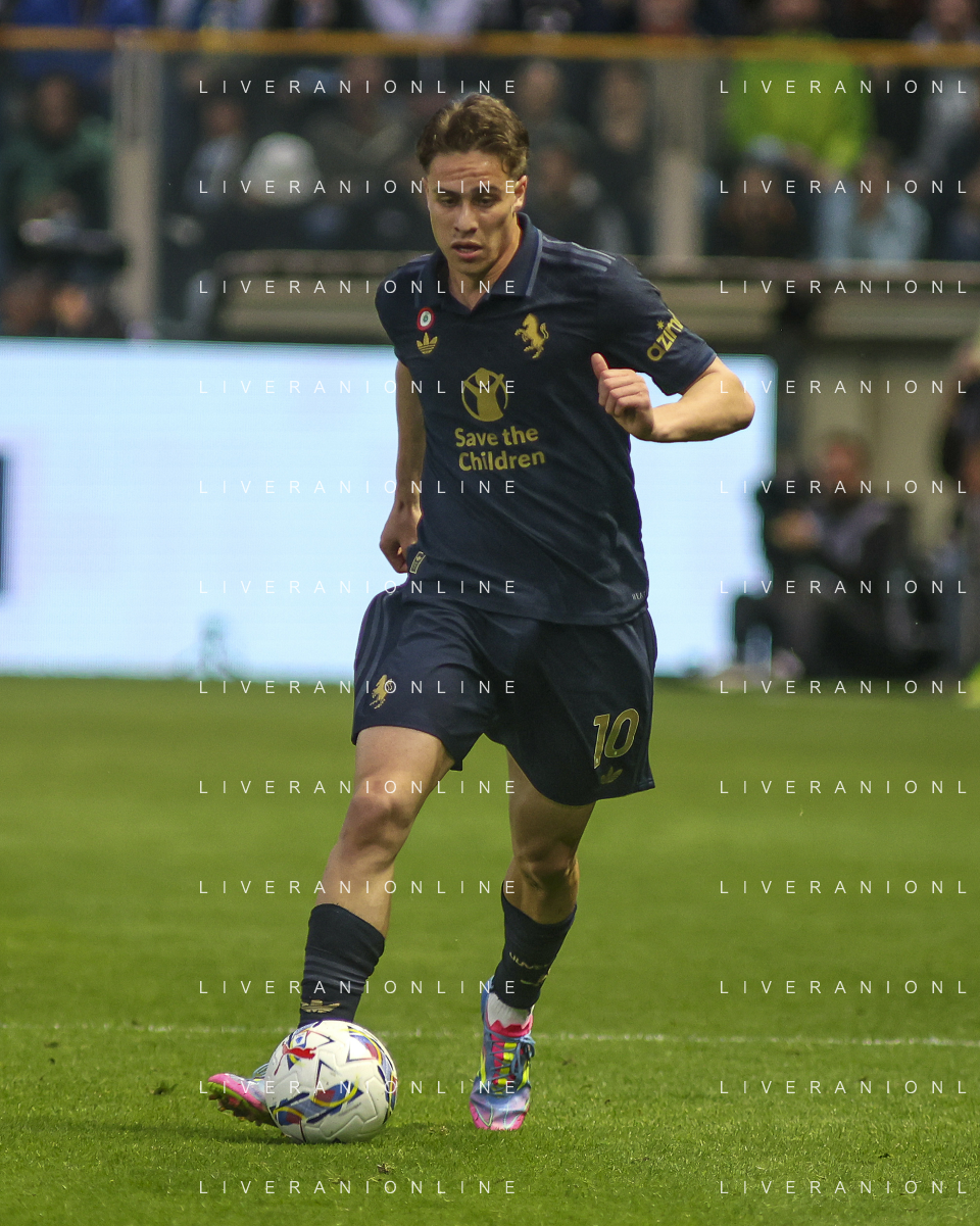 Nicolas Gonzalez of Juventus FC play the ball during Parma Calcio vs Juventus FC, 33° Serie A Enilive 2024-25 game at Ennio Tardini stadium in Parma (PR), Italy, on April 23, 2025. (Photo by Davide Casentini)- AGENZIA ALDO LIVERANI SAS