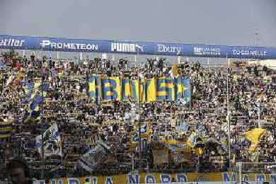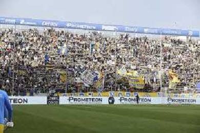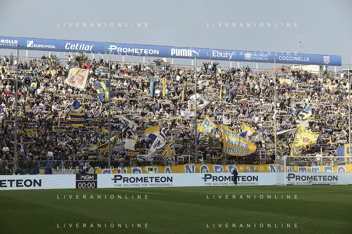 Parma fans show their support during Parma Calcio vs Juventus FC, 33° Serie A Enilive 2024-25 game at Ennio Tardini stadium in Parma (PR), Italy, on April 23, 2025. (Photo by Davide Casentini)- AGENZIA ALDO LIVERANI SAS