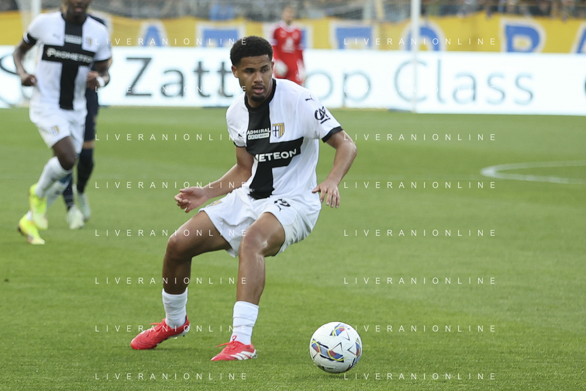 Dennis Man of Parma AC play the ball during Parma Calcio vs Juventus FC, 33° Serie A Enilive 2024-25 game at Ennio Tardini stadium in Parma (PR), Italy, on April 23, 2025. (Photo by Davide Casentini)- AGENZIA ALDO LIVERANI SAS