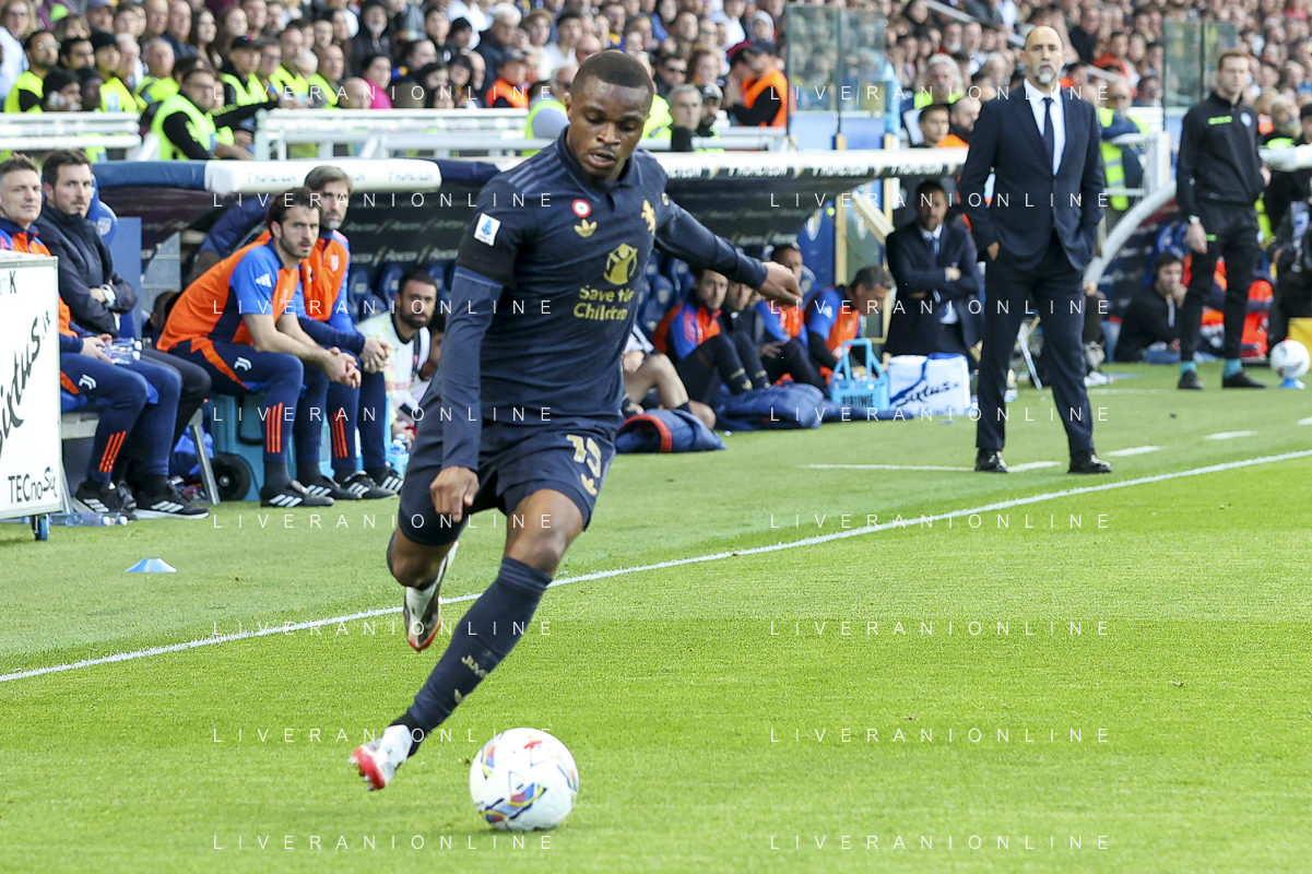 Lloyd Kelly of Juventus FC during Parma Calcio vs Juventus FC, 33° Serie A Enilive 2024-25 game at Ennio Tardini stadium in Parma (PR), Italy, on April 23, 2025. (Photo by Davide Casentini)- AGENZIA ALDO LIVERANI SAS