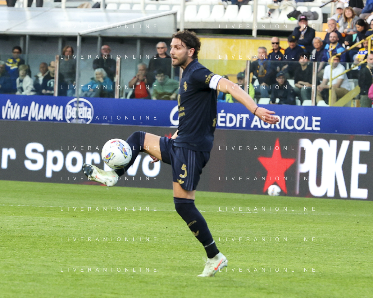 Manuel Locatelli of Juventus FC play the ball during Parma Calcio vs Juventus FC, 33° Serie A Enilive 2024-25 game at Ennio Tardini stadium in Parma (PR), Italy, on April 23, 2025. (Photo by Davide Casentini)- AGENZIA ALDO LIVERANI SAS