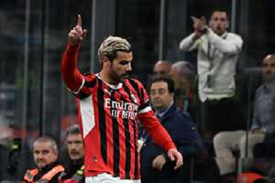 Coppa Italia Frecciarossa 2024-2025 Milano 23 Aprile 2025 (Stadio Giuseppe Meazza) Nella foto Theo Hernandez ©ANDREA ROSITO -AGENZIA ALDO LIVERANI SAS -INTER - MILAN Coppa Italia Frecciarossa semifinale gara di ritorno 23.04.2025