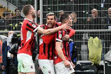 Coppa Italia Frecciarossa 2024-2025 Milano 23 Aprile 2025 (Stadio Giuseppe Meazza) Nella foto festa gol Milan ©ANDREA ROSITO -AGENZIA ALDO LIVERANI SAS -INTER - MILAN Coppa Italia Frecciarossa semifinale gara di ritorno 23.04.2025