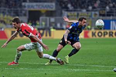 Coppa Italia Frecciarossa 2024-2025 Milano 23 Aprile 2025 (Stadio Giuseppe Meazza) Nella foto Theo Hernandez e Nicolo’ Barella ©ANDREA ROSITO -AGENZIA ALDO LIVERANI SAS -INTER - MILAN Coppa Italia Frecciarossa semifinale gara di ritorno 23.04.2025