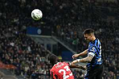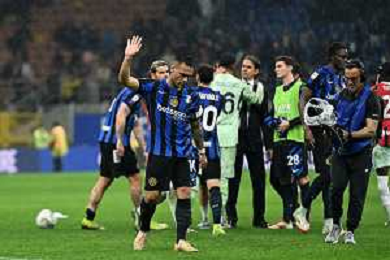 Coppa Italia Frecciarossa 2024-2025 Milano 23 Aprile 2025 (Stadio Giuseppe Meazza) Nella foto Lautaro Martinez e Theo Hernadez ©ANDREA ROSITO -AGENZIA ALDO LIVERANI SAS -INTER - MILAN Coppa Italia Frecciarossa semifinale gara di ritorno 23.04.2025